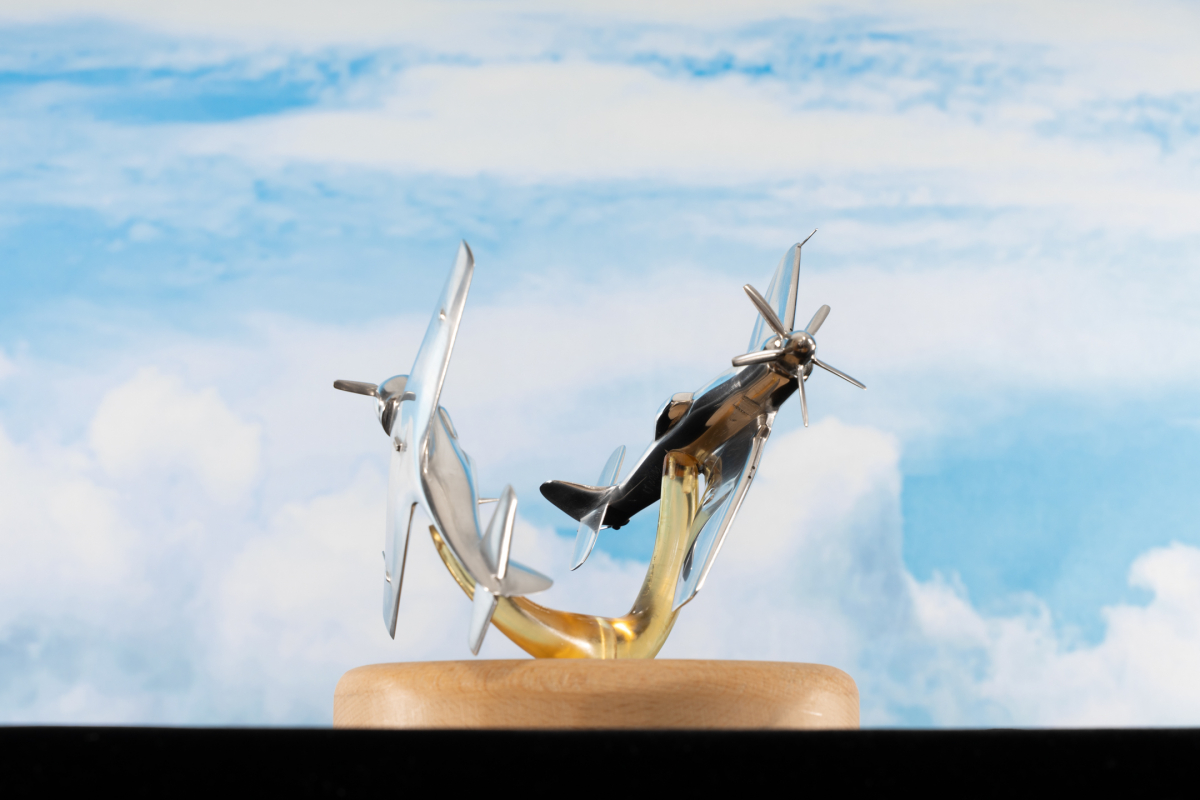 Explore a unique collection of aluminium aircraft sculptures crafted by aerospace engineer Robert Millis. This portfolio showcases the intricate detail and dynamic forms of his miniature aerial combat scenes, brought vividly to life through professional three-dimensional artwork photography.