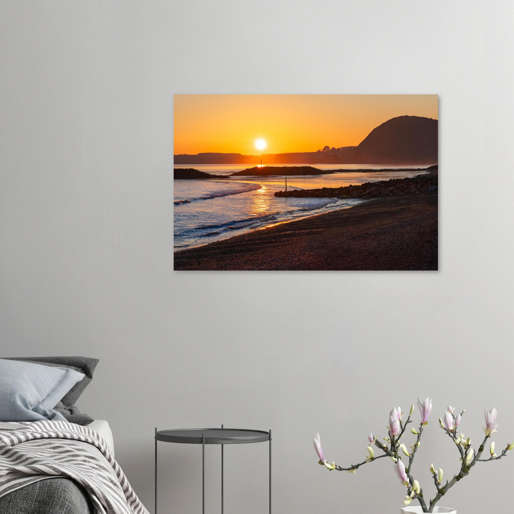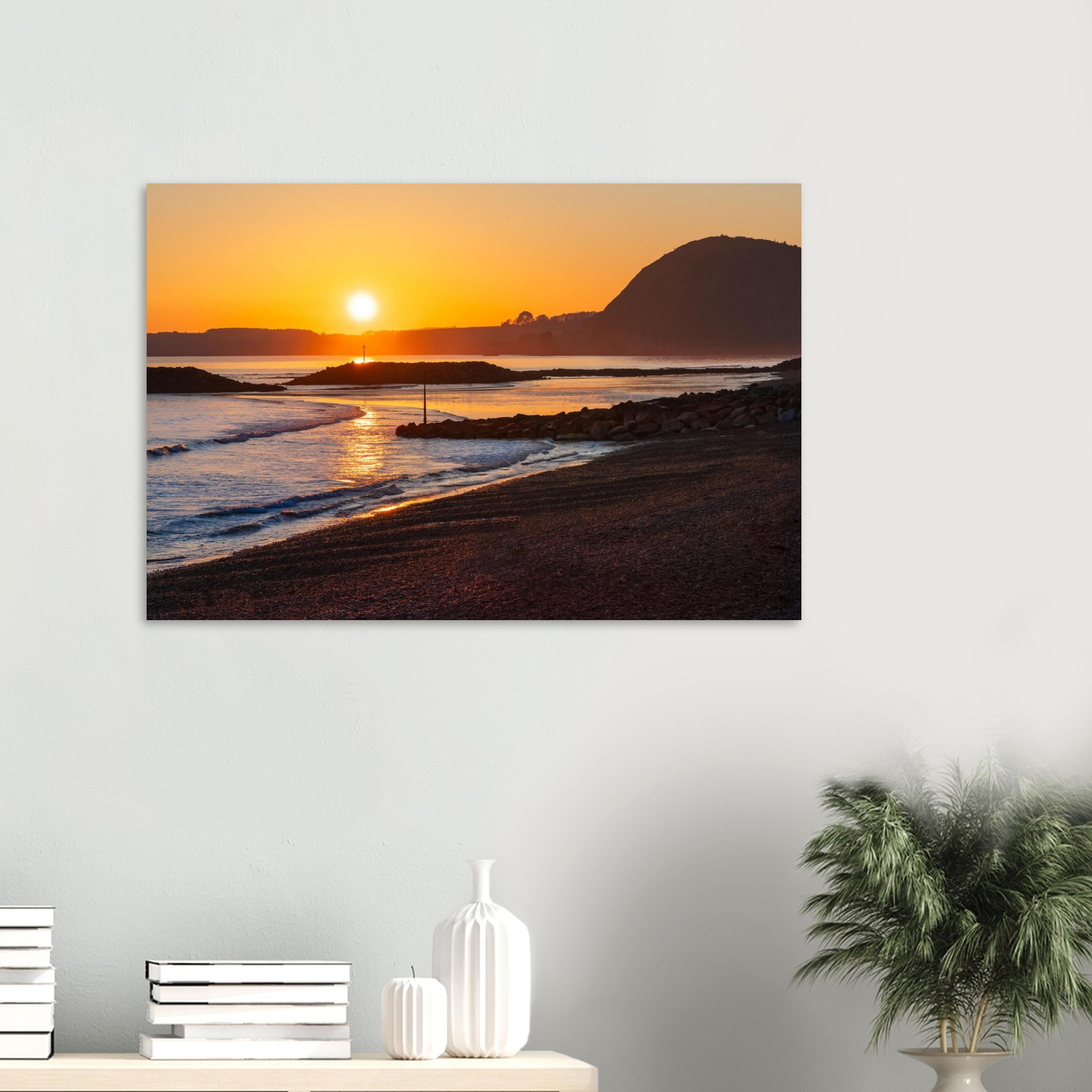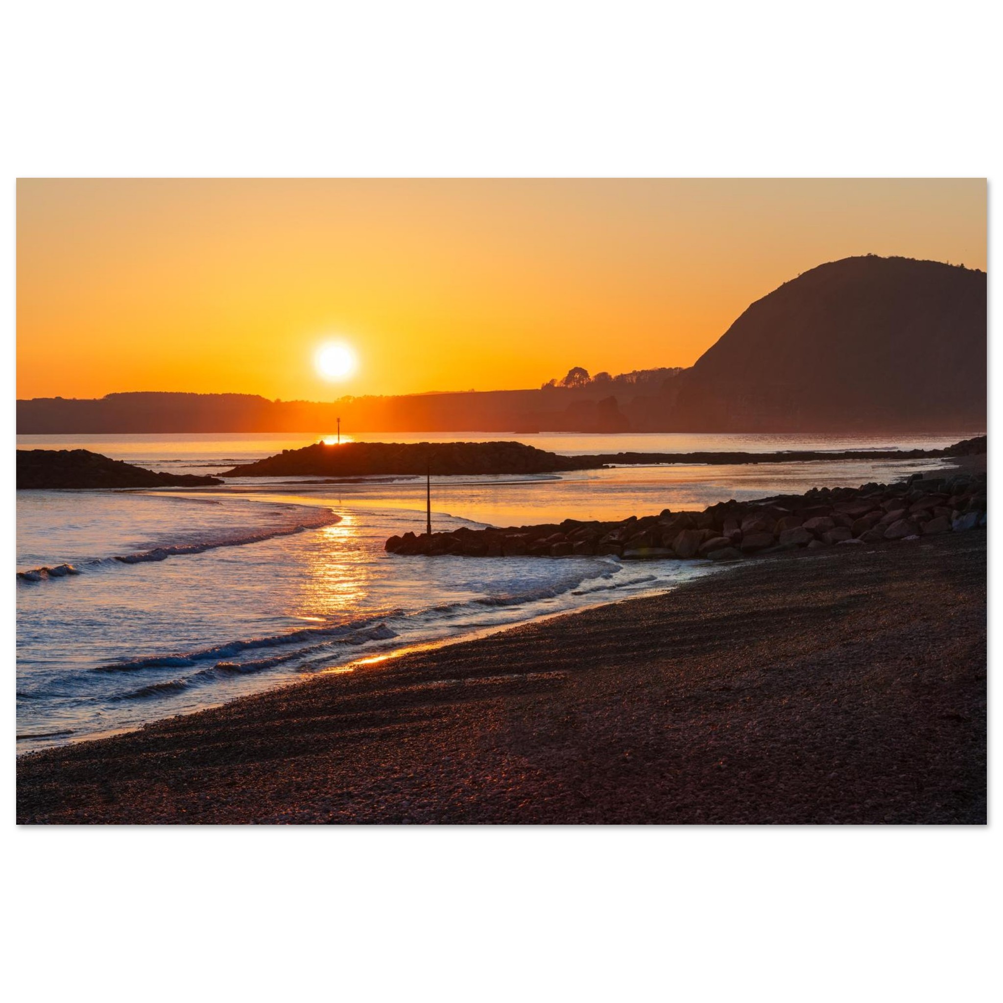 As the sun dips towards the horizon, the golden hues of the sky and the reflection on the calm sea create a captivating scene at Seaton Beach, United Kingdom. The absence of people allows for an undisturbed connection with nature, enhancing the tranquility of the landscape. The combination of the warm sunset tones and the gentle waves crashing onto the shore evokes a sense of serenity and peace. This picture perfectly captures the natural beauty of the beach and Sea at Esplanade, Seaton.